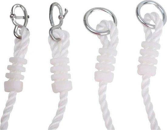 De schommel wordt geleverd met 150cm lange touwen en duidelijke installatie-instructies. Hang de schommel op aan een stevige balk, boomtak of schommelframe dat minimaal 50 kg kan dragen. Zorg voor voldoende vrije ruimte rondom (minimaal 2 meter) en een zachte ondergrond zoals gras of rubbertegels. Test altijd eerst de stevigheid voordat uw kind gaat schommelen.